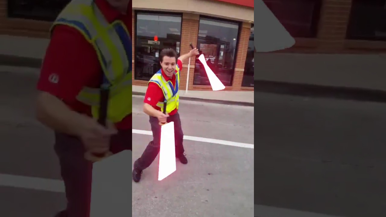 Garrett Robinson filmed this amusing video a Star Wars-loving Chick-fil-A parking attendant keeping himself entertained by performing some impressive Darth Maul-inspired fight moves with two toy lightsabers. In the clip below, YouTube user GameKiller48 added appropriate lightsaber glow and sound effects.
