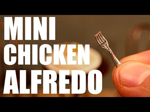 In the latest episode of his oddly satisfying, miniaturized cooking series, “Walking With Giants,” artist Jay Baron meticulously prepares a tiny plate of chicken alfredo.