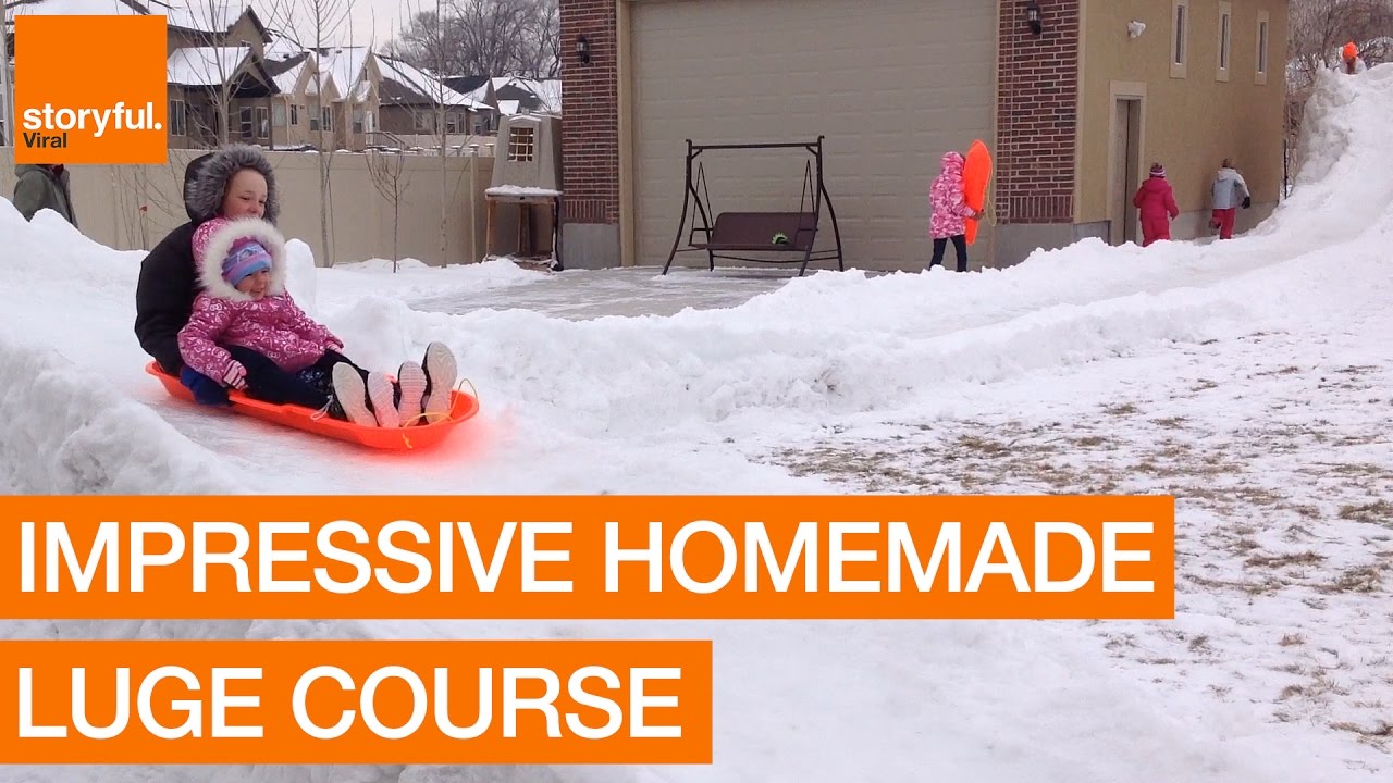 Christine Coleman Williams from South Jordan, Utah shared these clips of the 300 foot long ice luge that her husband built in their backyard for their fifteen lucky kids.