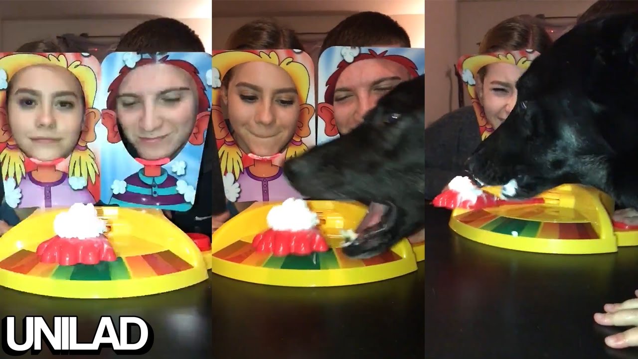 Taylor Phelps shared this funny clip of her German shepherd dog happily helping himself to the whipped cream being used in a two-player version of Hasbro’s Pie Face game.