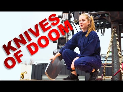 (PG-13 language) San Francisco-based inventor Simone Giertz, aka “The Queen of Sh*tty Robots,” visits the guys from MegaBots to test out a giant robot version of her automatic food chopping machine. See more videos of the giant chopping robot on the Megabots and Tested channels.