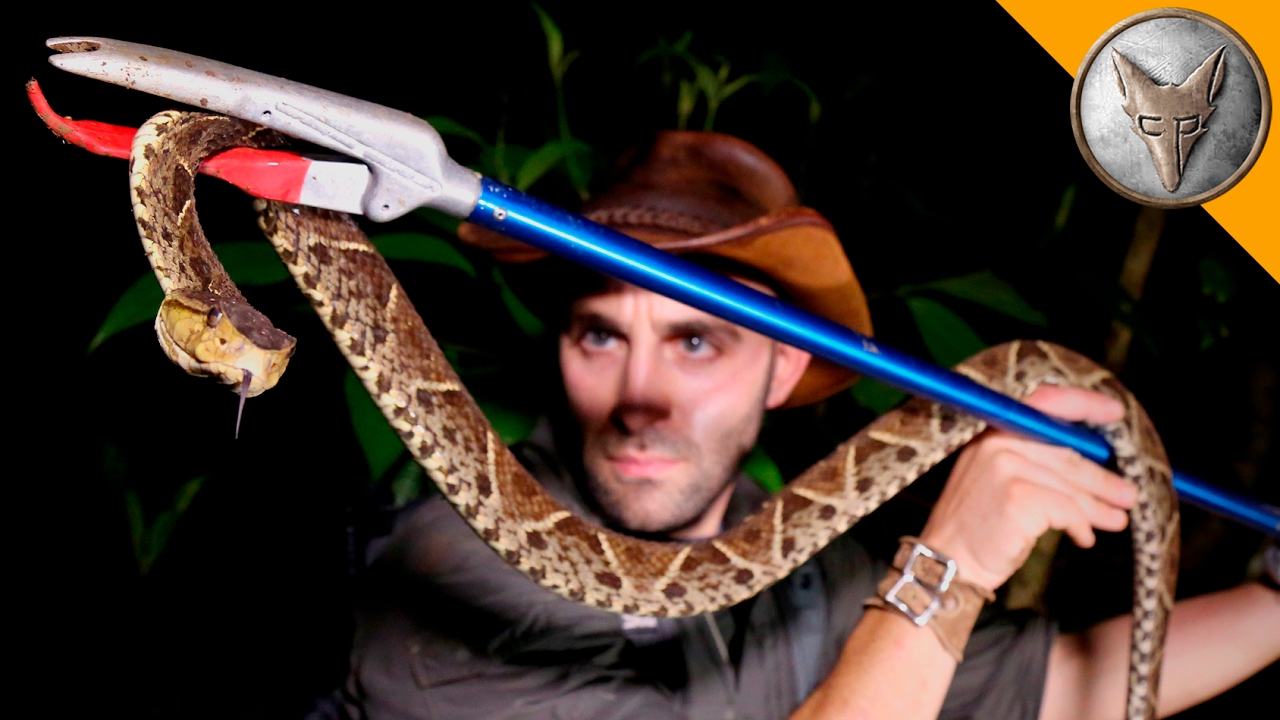 “Known for its potent venom and extremely “bitey” temperament the Fer De Lance pit viper is responsible for the most deaths of all snake bites in South and Central America. Needless to say this snake encounter demands all the caution and care Coyote and the crew have to offer.”