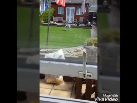 Michael Latimer demonstrates a few examples of how his dog comes running whenever the cookie container gets opened, even when she’s asleep in the yard outside.
