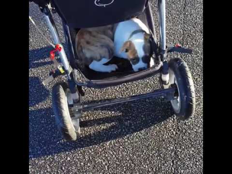 Lazy Puppy Climbs Onto Baby Stroller During Walk