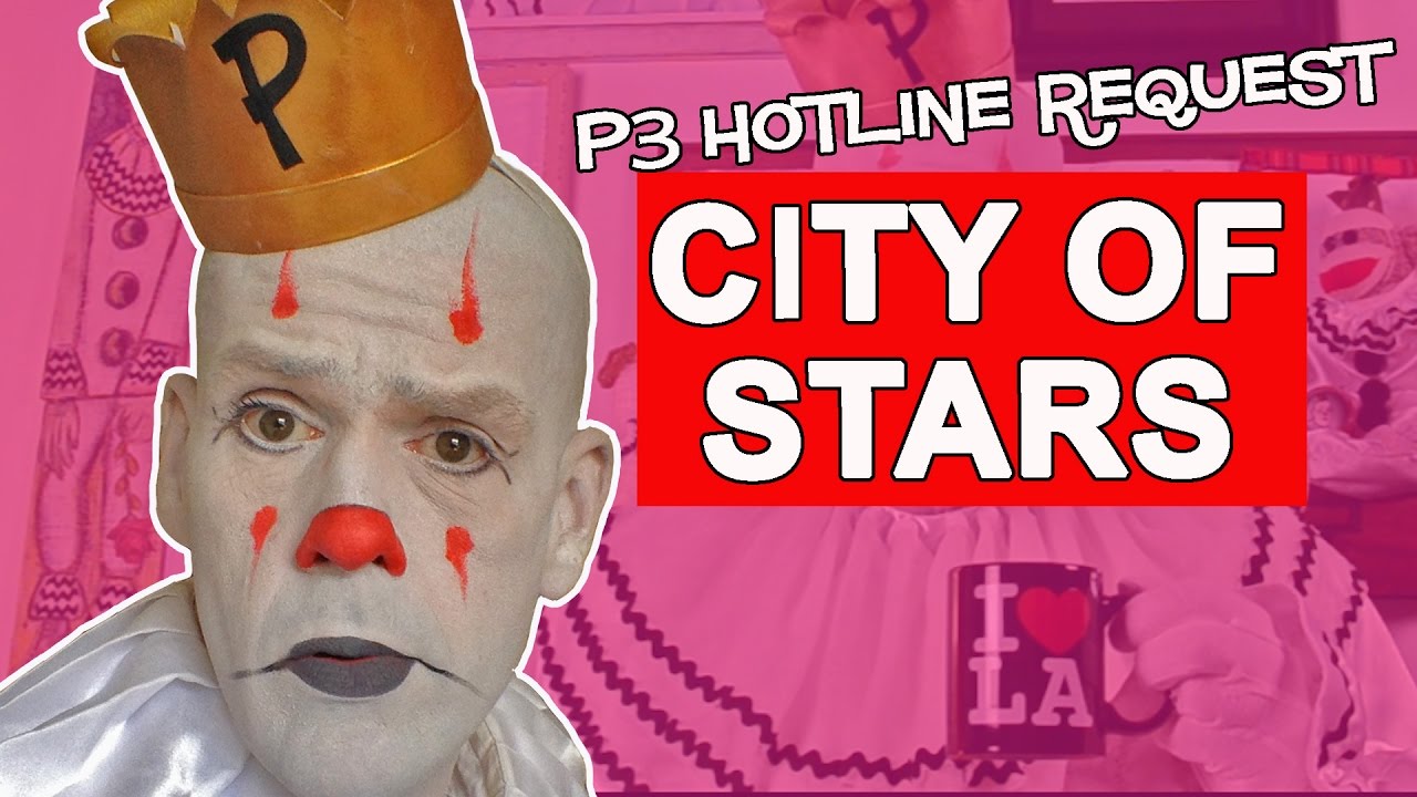 At his fans’ request, Puddles, the 7-foot-tall sad clown with a golden singing voice, performs his take on La La Land‘s Oscar-nominated original song, “City of Stars,” by composer Justin Hurwitz and lyricists Benj Pasek and Justin Paul.