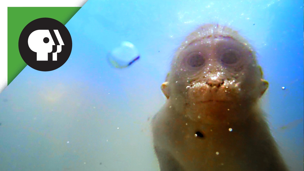 This clip from an upcoming episode of the PBS nature series, Spy in the Wild, a troop of daredevil macaque monkeys from India take turns jumping into their own personal swimming pool.