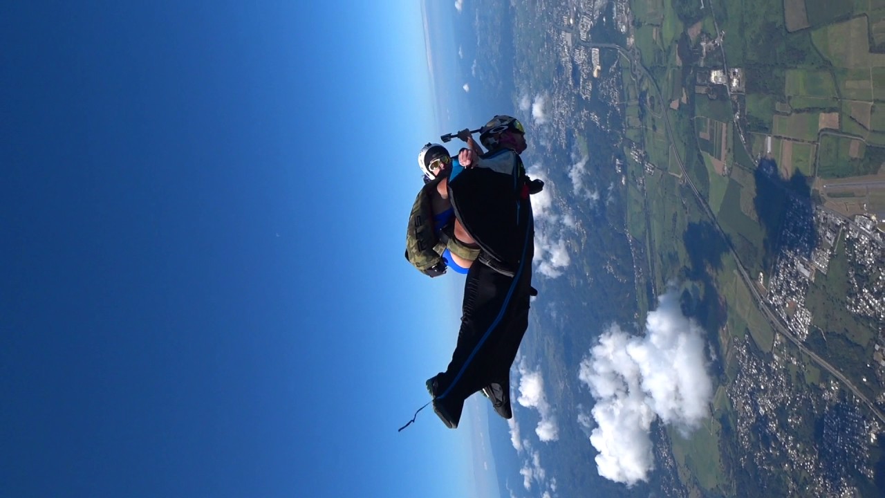 Photographer Jeff Donohue from Skwrl Productions filmed this awesome and amusing video of skydiver Robyn Young riding her wingsuit-wearing friend, Oliver Henry, like a bucking bronco during a recent skydiving trip in Arecibo, Puerto Rico.
