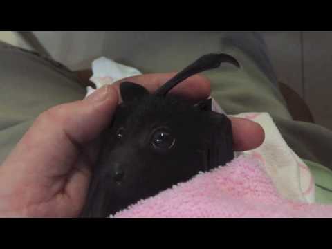 Little Asha, the six-month-old rescued black flying fox bat, adorably begs for more when Meg Churches, a bat specialist and caregiver from Australia, gives her fruit for the first time.