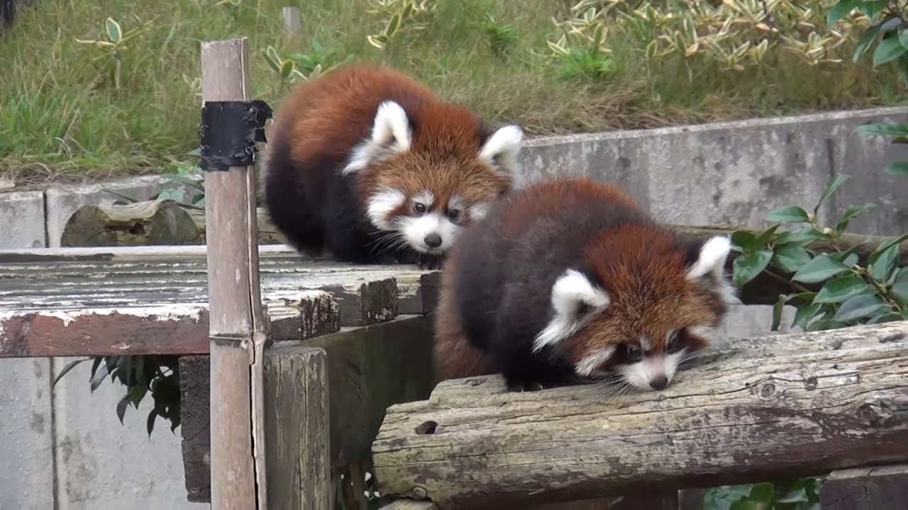 Baby Red Pandas Waddle Across Log for Snacks