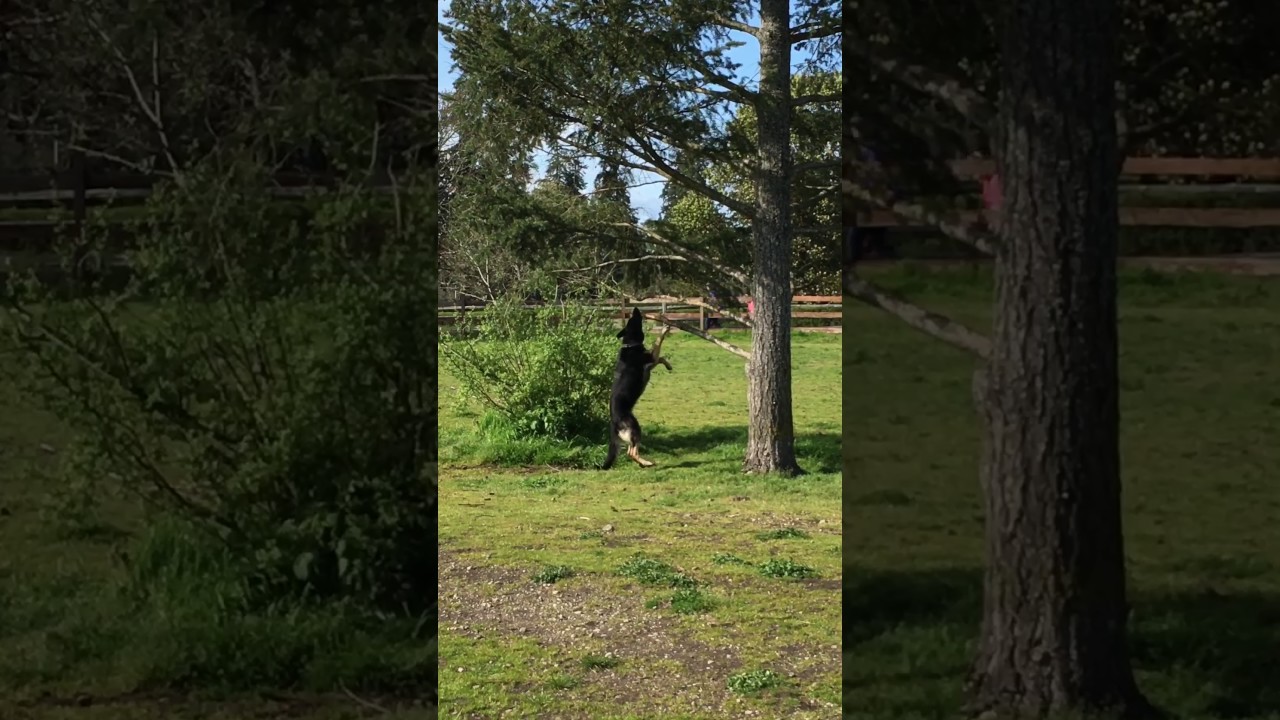 YouTube user KC DC shared this amusing video of her German shepherd trying desperately to break the perfect stick off a tree. The determined dog even manages to bark at the branch while chomping down on it.
