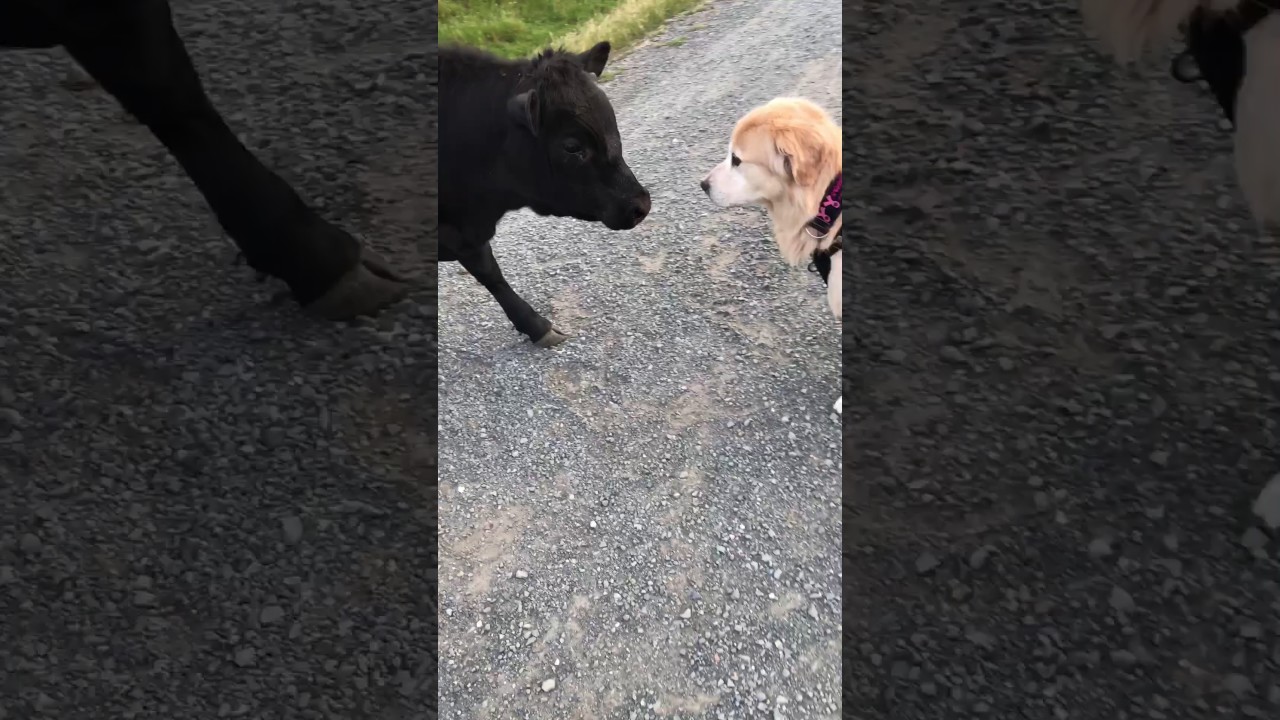 While out on a walk with her golden retiever, Ozzie, Kim Bartleson filmed this cute video of Ozzie’s first encounter with a cow, which turned into an instant friendship.