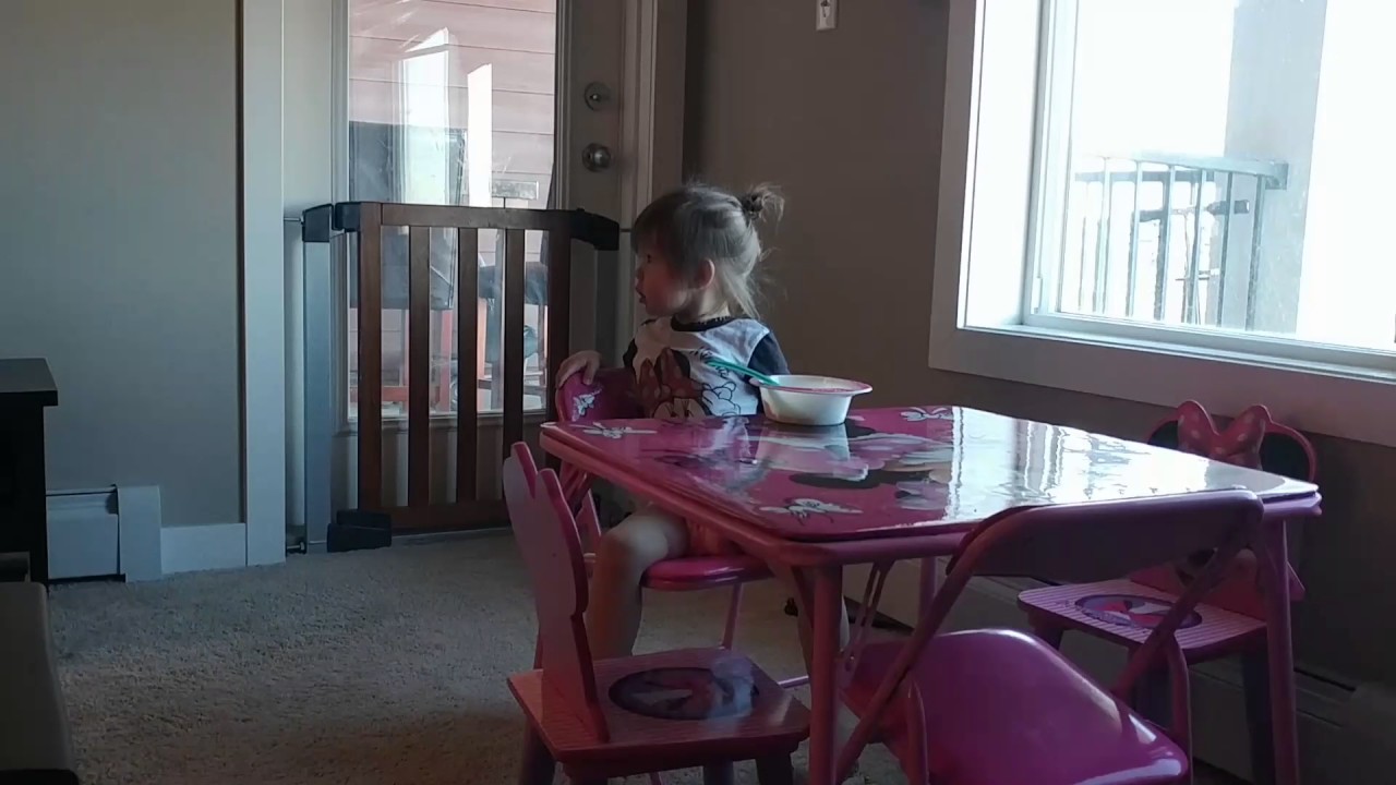 While watching cartoons and eating a bowl of cereal, young Matayah gets a little too into her show and accidently “boom booms” her spoon across the room.