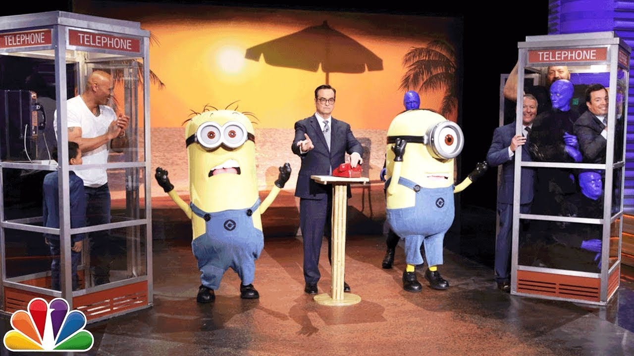 In this clip from Wednesday night’s episode of The Tonight Show, host Jimmy Fallon and actor Dwayne “The Rock” Johnson play the Tonight Show trivia game, “Phone Booth,” where a random mystery guest squeezes into their respective phone booths each time they get a question wrong.