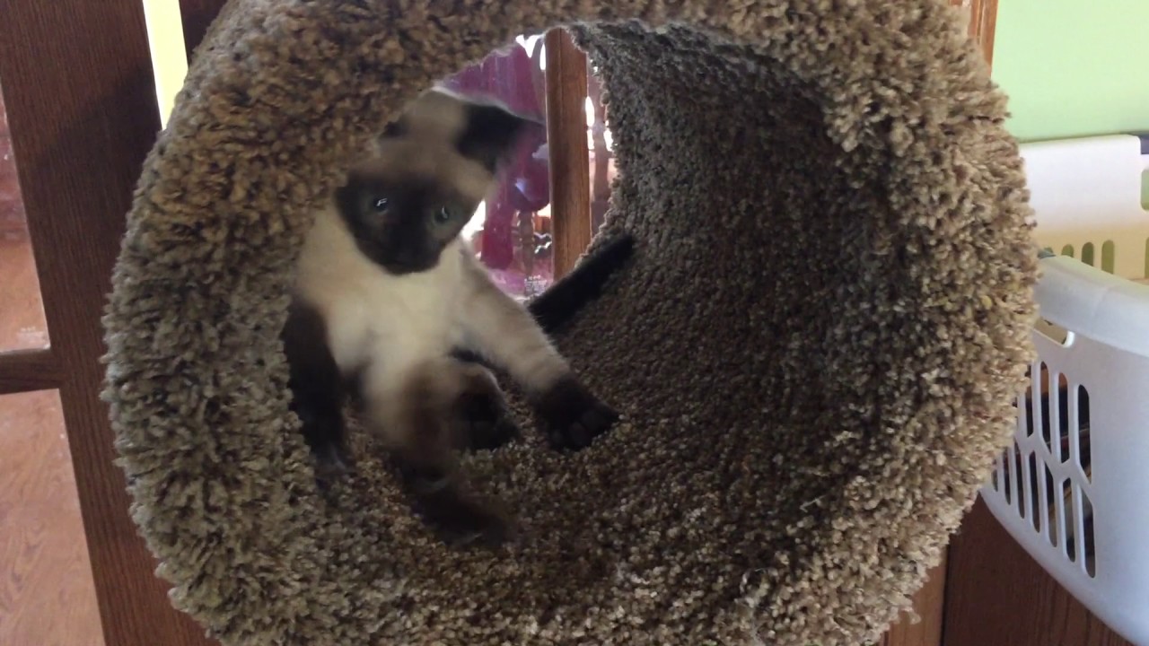 Siamese Kitten Spazzes Out in His New Cat Tree