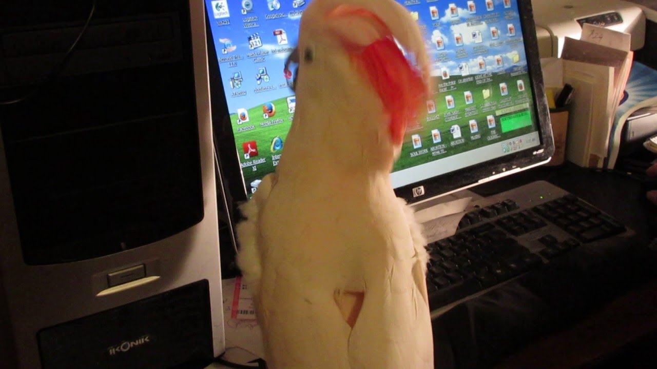 Caesar, the clever salmon-crested cockatoo, seems to be very proud of herself after learning how to type keys on a computer keyboard like her human.