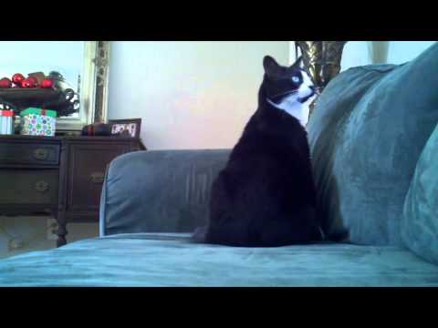 Itty Bit, the deaf tuxedo cat, gets adorably confused when something mysterious wakes him up from his afternoon nap, then happily discovers it was his human.