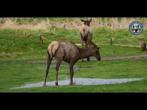 Colorado Parks and Wildlife shared this incredibly cute video of a elk having the time of her life splashing and spinning in a puddle after a big spring storm swept through Evergreen, Colorado.