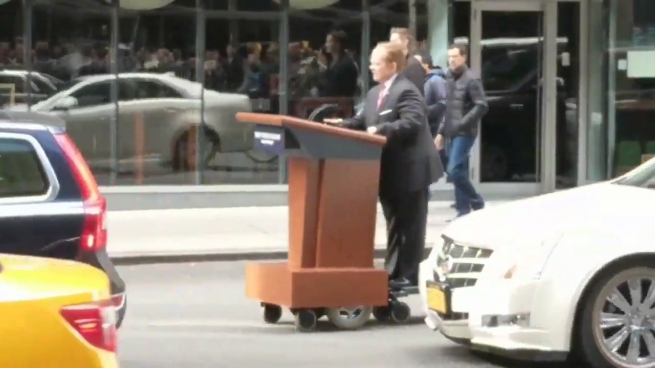 Noel Ashford captured this short clip of comedic actress and the host of the upcoming May 13th episode of Saturday Night Live, Melissa McCarthy, driving a podium down Manhattan’s 58th street while filming a third sketch (previously) as White House Press Secretary, Sean Spicer. In the clip below, watch CNN’s Chloe Melas‘ footage of the hilarious sight.