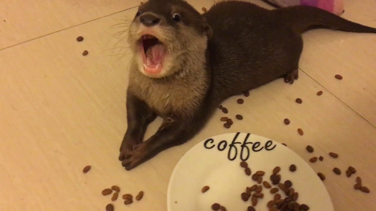 In this otterly adorable video from Bangkok, Thailand, Cartel, the three-month-old Asian small-clawed otter, happily munches and crunches on his kibble snacks.