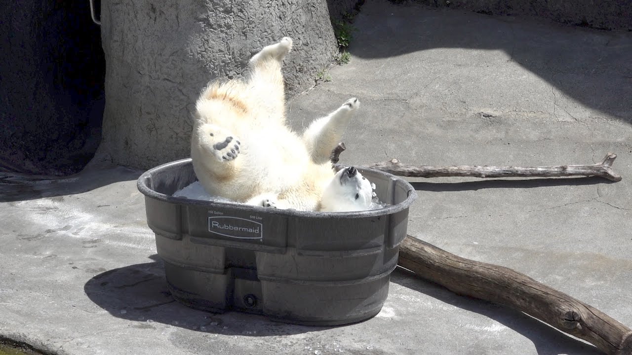 The Oregon Zoo in Portland, Oregon shared this cute footage of their playful one-year-old polar bear cub, Nola, having the best time ever burrowing and somersaulting in big tub filled with ice.