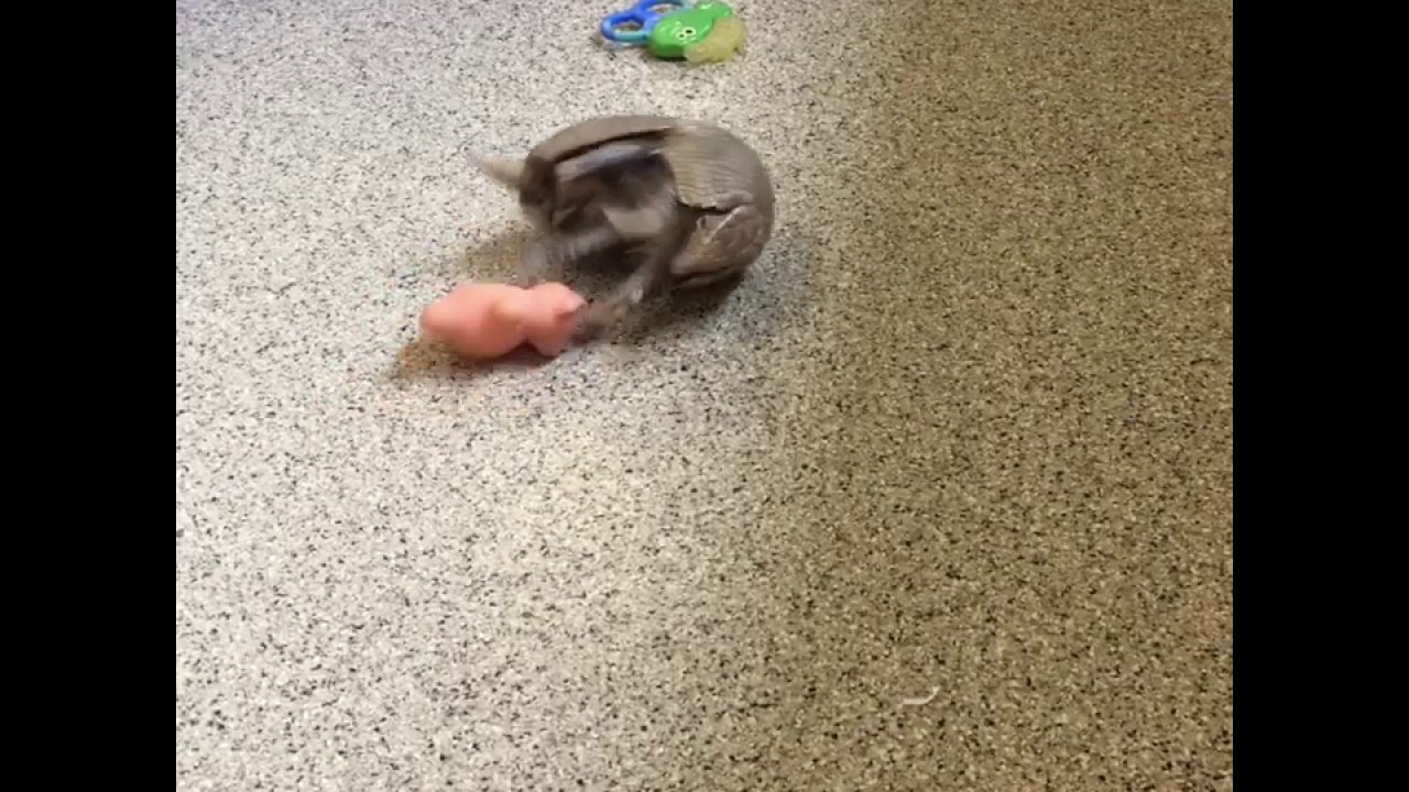 The NEW Zoo & Adventure Park in Suamico, Wisconsin shared this adorable video of Rollie, the Brazilian three-banded armadillo, having a blast playing with his squeaky teddy bear toy.