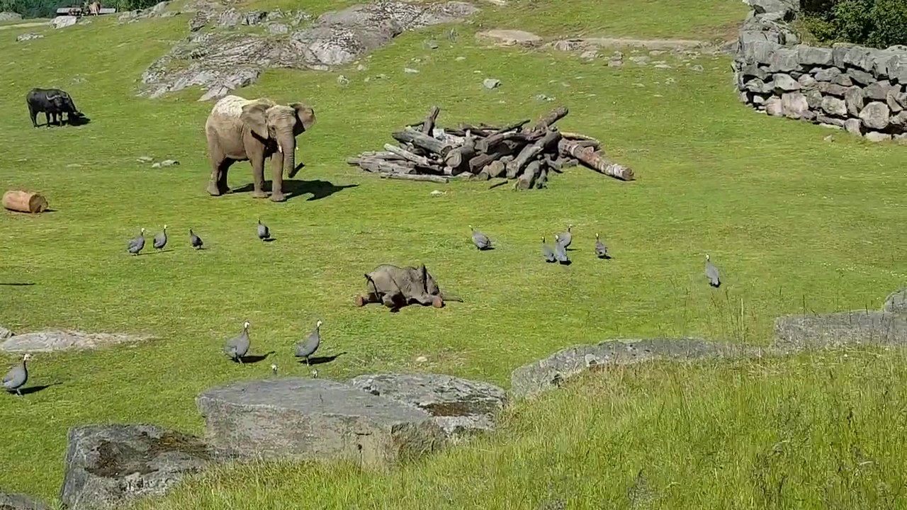 Jonas Svensson from the Borås Djurpark zoo in Borås, Sweden captured this adorable video of a clumsy baby elephant falling on his face while trying to chase down a flock of guineafowl.