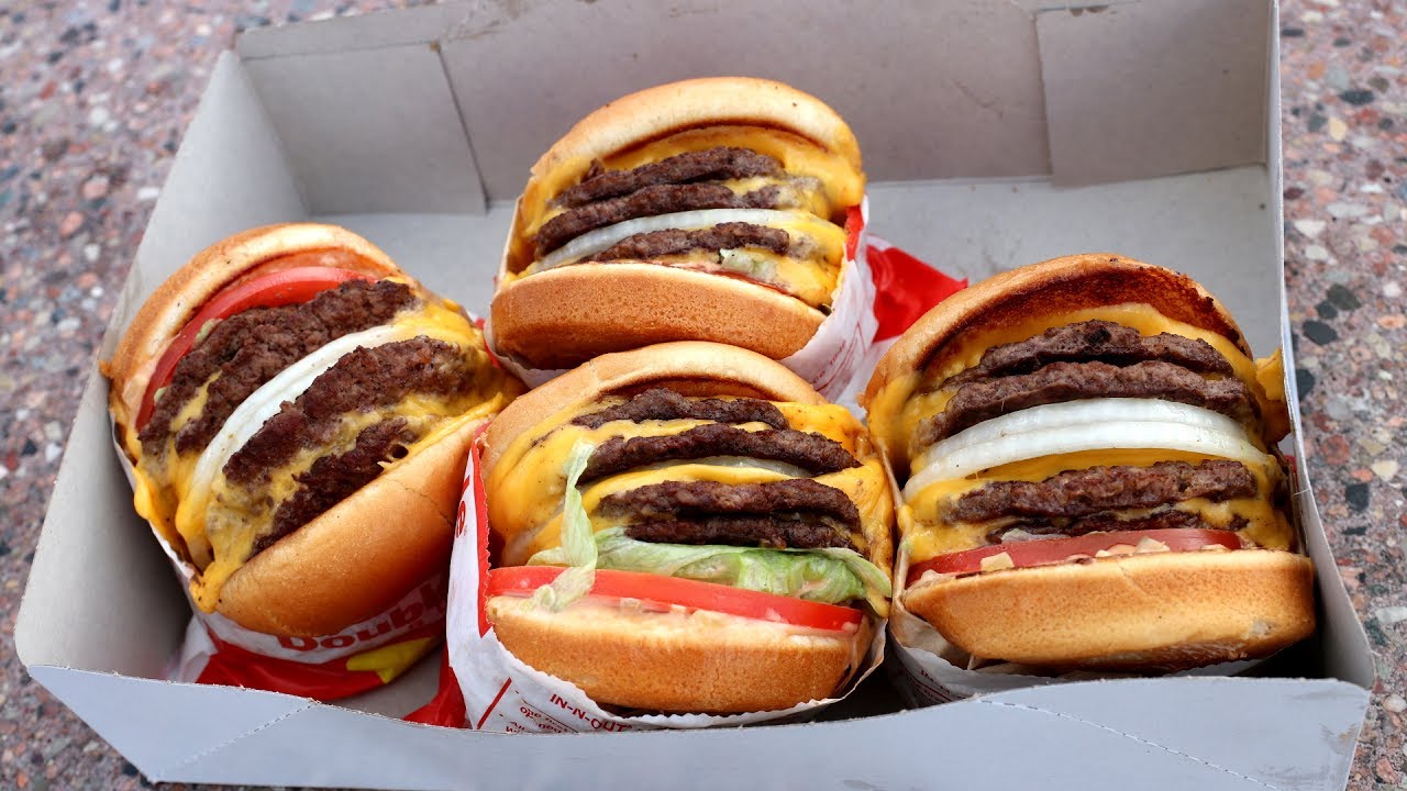 For his latest personal food challenge, San Jose, California-based professional competitive eater Matt “Megatoad” Stonie vists the popular mostly california-based fast food restaurant chain, In-N-Out, to attempt to eat four 4×4 cheeseburgers in one sitting, as fast as possible.