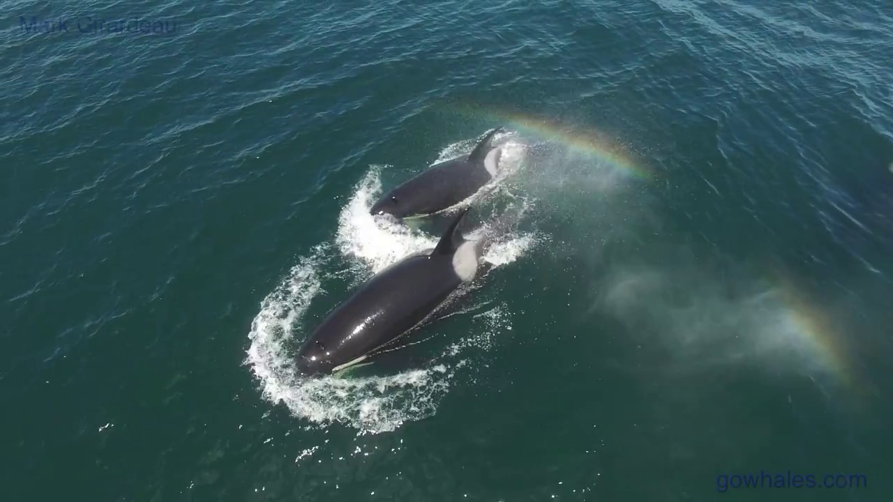 While on the Monterey Bay Whale Watch tour off the coast of Monterey, California, photographer Mark Girardeau used a drone to film this breathtaking footage of a pod of killer whales making rainbows with their clouds of mist.