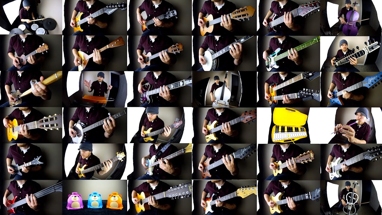 Chicago-based rock musician Rob Scallon performs an original song using every instrument he owns. View a full list of the instruments he used on YouTube. In the video below, view Rob playing all 45 instruments on one screen.