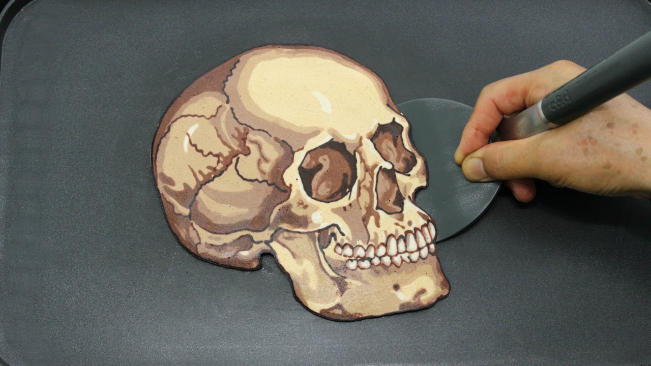 For his latest pancake masterpiece, Japanese artist “Tiger Tomato” meticulously makes a creepily realistic skull pancake using different flavors of pancake batter.