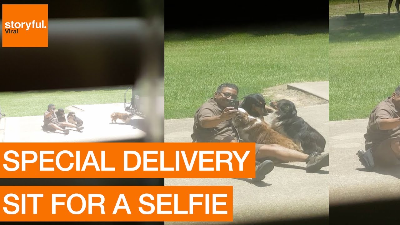 UPS Guy Stops to Take Selfies With Neighborhood Dogs