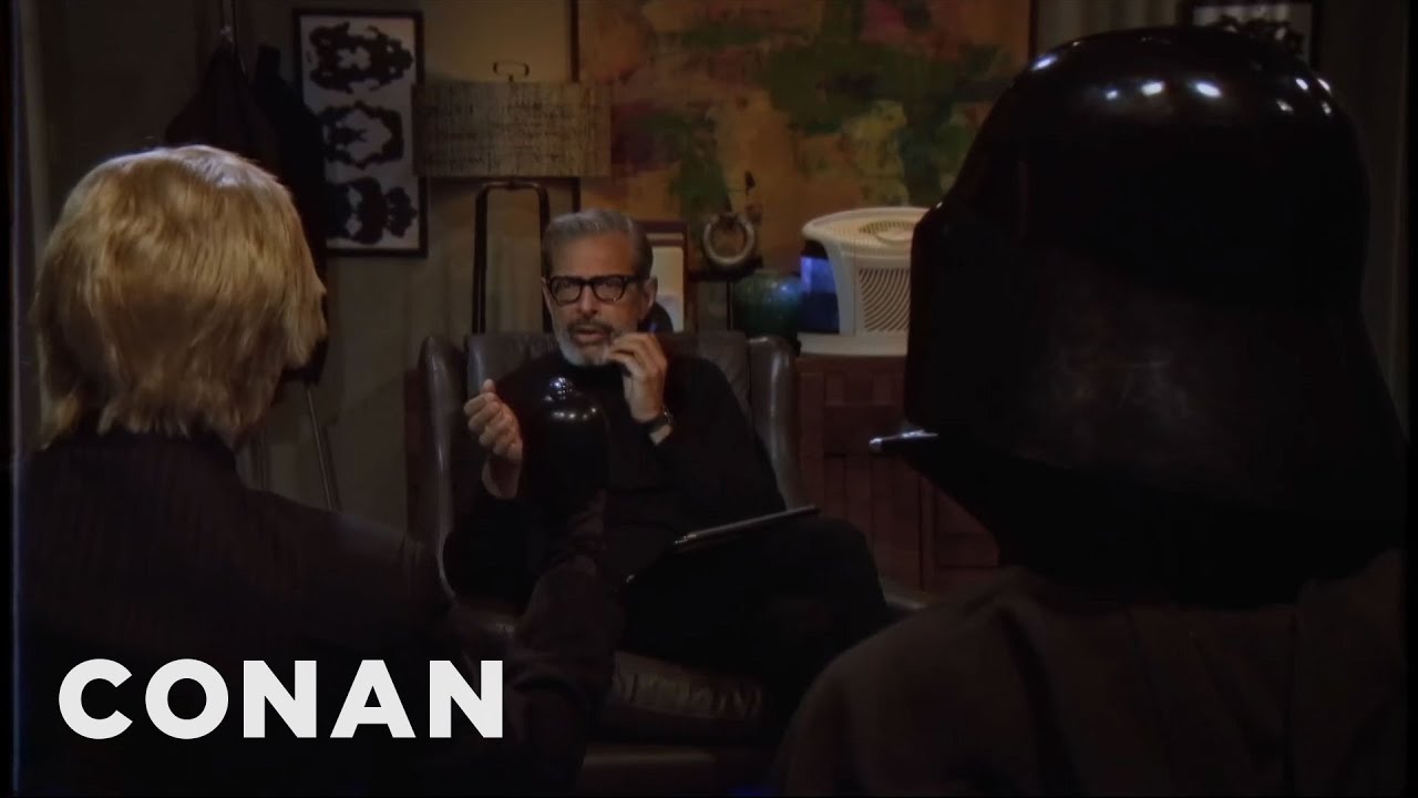 In this hilarious sketch from Thursday night’s episode of Conan, Dr. Leonard Meshbesher (Jeff Goldblum) sits down with some of the galaxy’s greatest heroes and superheroes to help resolve their emotional conflicts.