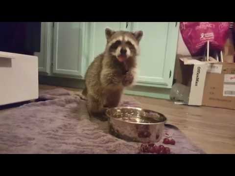 Rocket, the pet raccoon, takes a break from hanging out with his best friend Stryker the dog, to enjoy some grapes, his favorite snack, but not before thoroughly washing each one. You can see more of Rocket on his Instagram page.