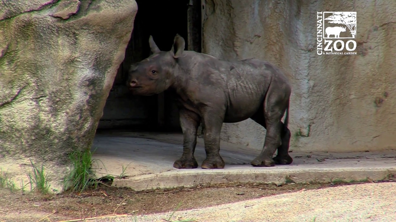 The Cincinnati Zoo & Botanical Garden in Ohio shared this cute footage of their new baby black rhinoceros, Kendi, bravely venturing out into the outdoor rhino habitat for the first time.