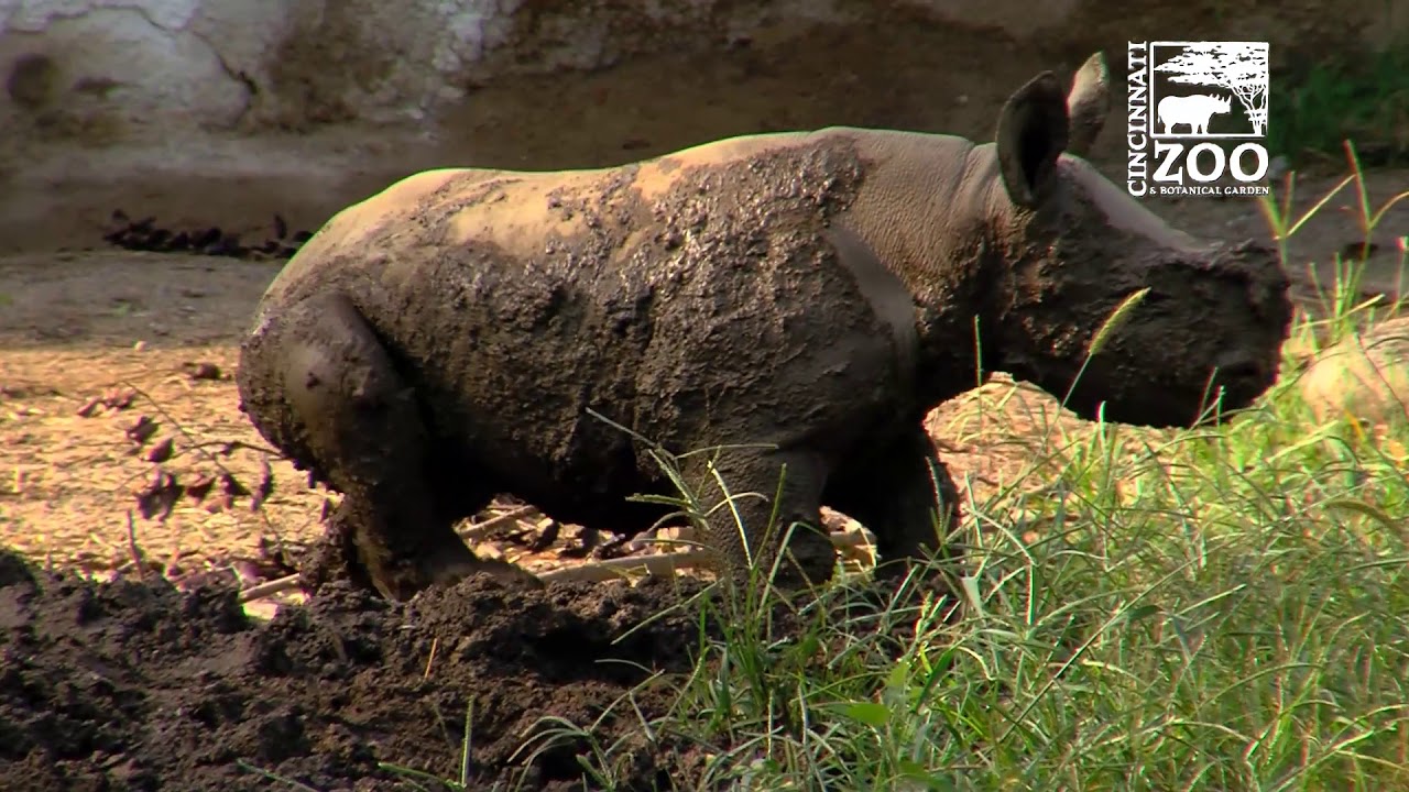 The Cincinnati Zoo & Botanical Garden in Ohio shared this adorable footage of their new baby black rhinoceros, Kendi, experiencing the joys of wallowing in a mud for the first time.