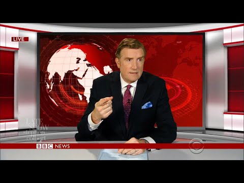 Late Show host Stephen Colbert shares a hilarious clip of BBC News presenter Simon McCoy losing the will to live while reporting on the World Dog Surfing Championships in Pacifica, California.