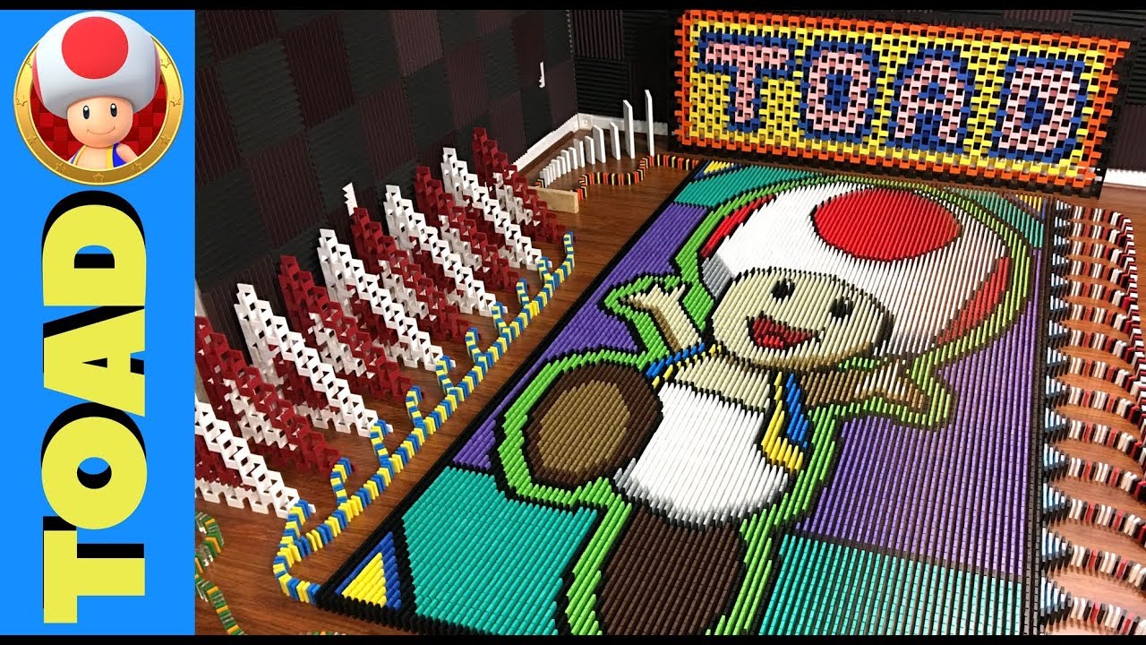 Louisville, Kentucky-based domino artist “The Domino King” continues his series of domino tributes to classic Nintendo characters with a tribute to Toad from the Mario franchise. This amazing setup took four days and 20,036 dominoes to create.