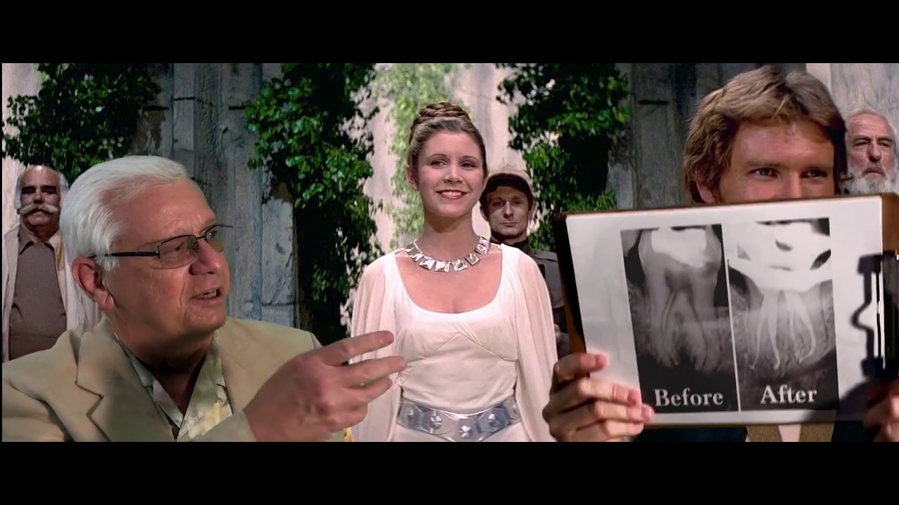 Dr. J. Steven Abernathy from Jonesboro, Arkansas digitally added himself to clips from the original Star Wars film to create this hilarious promo video his laser dentistry services.