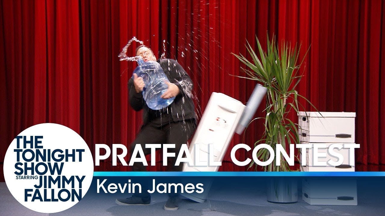 In this clip from Tuesday night’s episode of The Tonight Show, host Jimmy Fallon and actor-comedian Kevin James hilariously try to out-pratfall each other in various situations, like climbing stairs and filling a water cooler.
