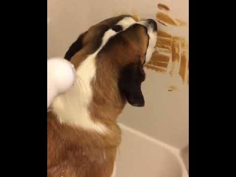 A dog owner from Evans Mills, New York, came up with a genius way to keep their bath-hating Saint Bernard, George, distracted while giving him his baths.