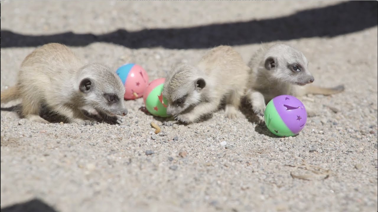 The Symbio Wildlife Park Zoo in Sydney, Australia have shared another cute video (previously) of their 2-month-old baby meerkats. In this video, the palm-sized meerkittens (pups) venture outside with their parents, Aya and Penfold, to learn foraging skills while playing with toy balls.