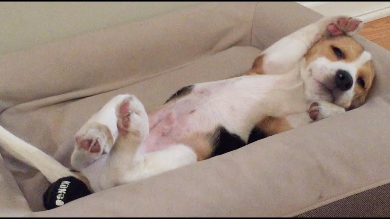 Beagle Puppy Struggling to Wake Up from a Nap