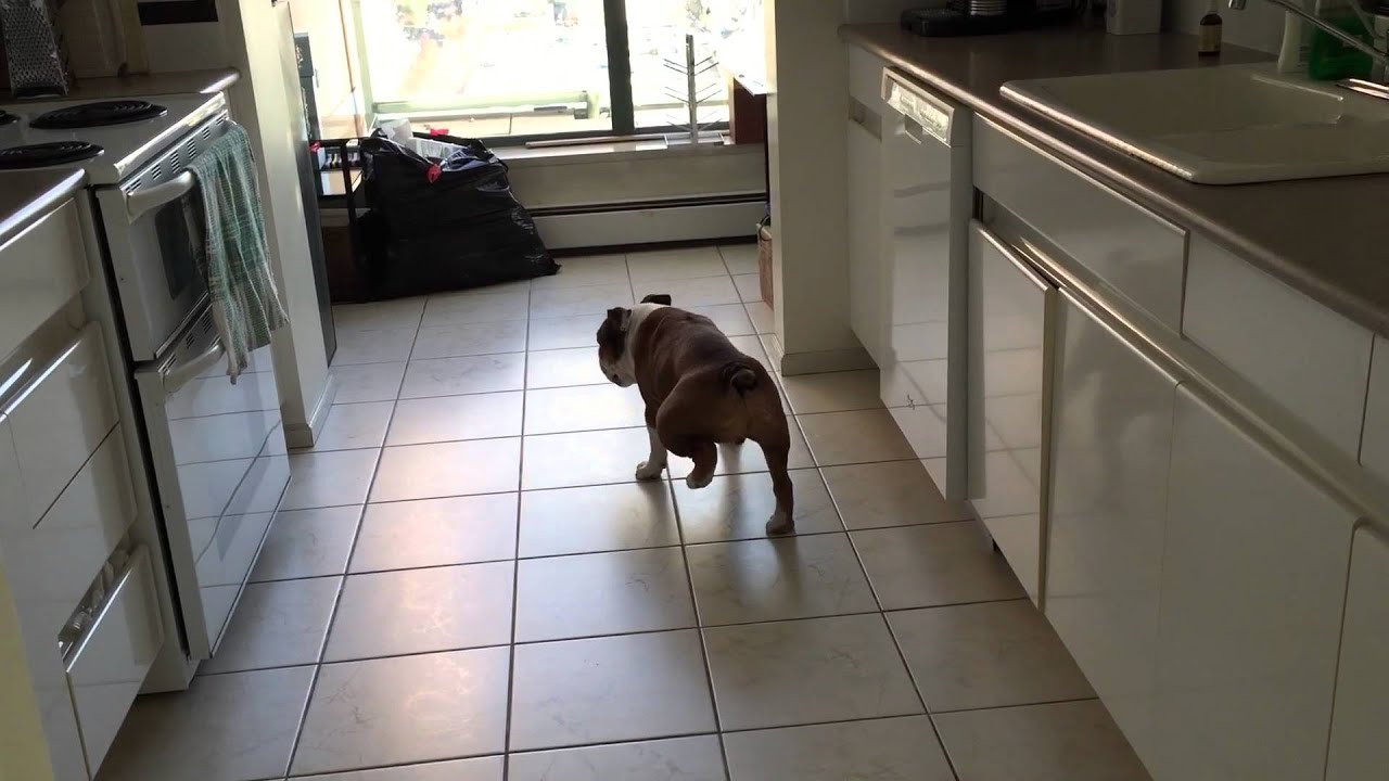 Bradley Friesen from Vancouver, British Columbia, Canada, shared this hilarious video of his odd English bulldog, Bentley, doing a moonwalk across the kitchen that would make Michael proud.