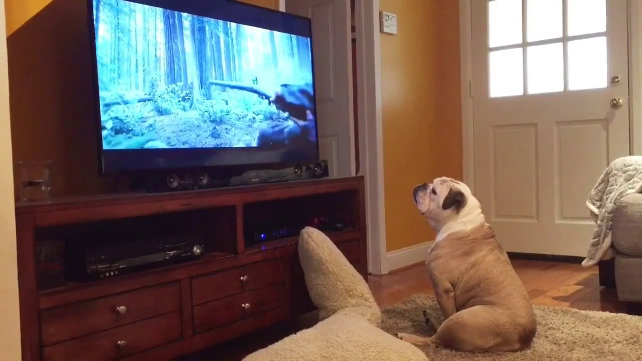 While intensly watching the 2015 film, The Revenant, Khaleesi, the chubby English bulldog, (who’s famous for warning horror movie victims) jumps into action and tries to help the film’s star Leonardo DiCaprio when she gets to the gruesome bear attack scene.