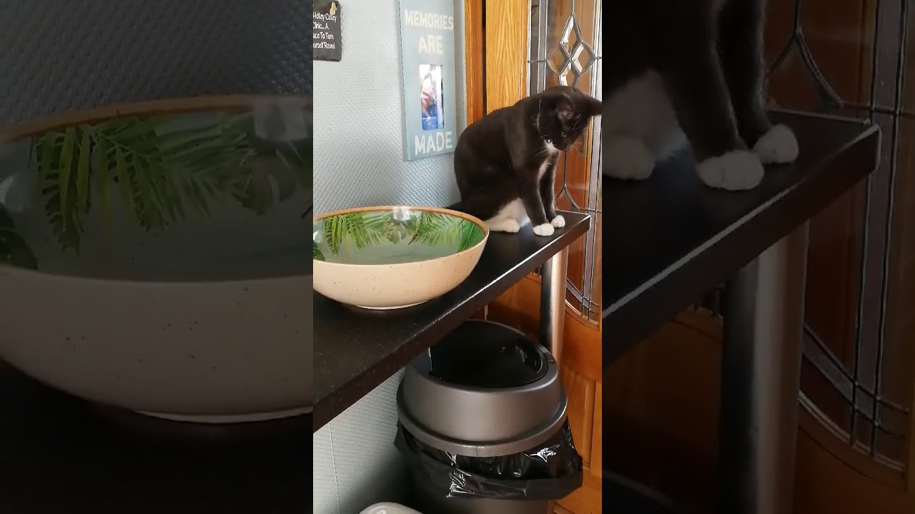 In this cute video from Dublin, Ireland, Jas, the tuxedo cat, persistently knocks a plastic bottle off a shelf whenever his human places the bottle next to him.