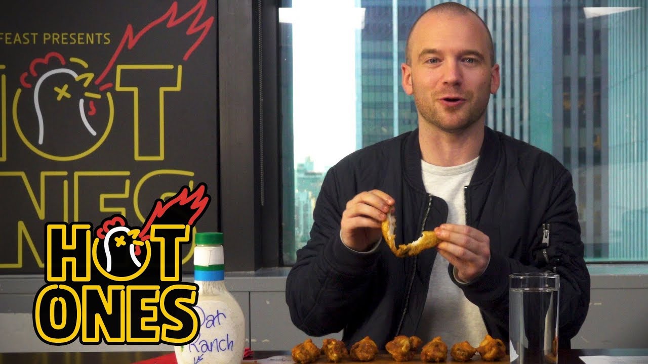 “Does Sean Evans even know how to eat a chicken wing? Despite the fact that he has taken down more than 1,000 of them on Hot Ones, the jury’s still out on his technique. Here, Evans faces the commenters and tries out some of the wing-eating methods championed by past guests.”