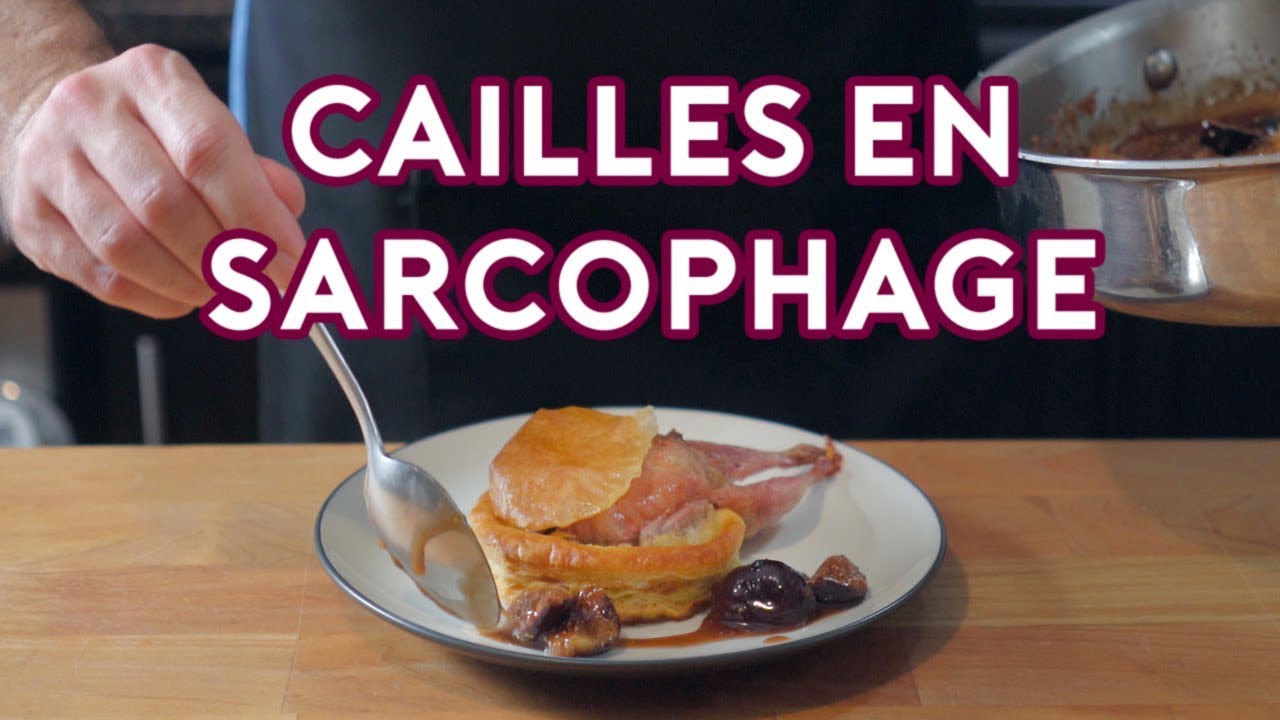 In the latest episode of “Binging with Babish,” a cooking series where home chef Andrew Rea recreates famous foods from films and TV shows, Andrew demonstrates how to make his take on the decadent dish, Cailles en Sarcophage, from the 1987 Danish drama film, Babette’s Feast.