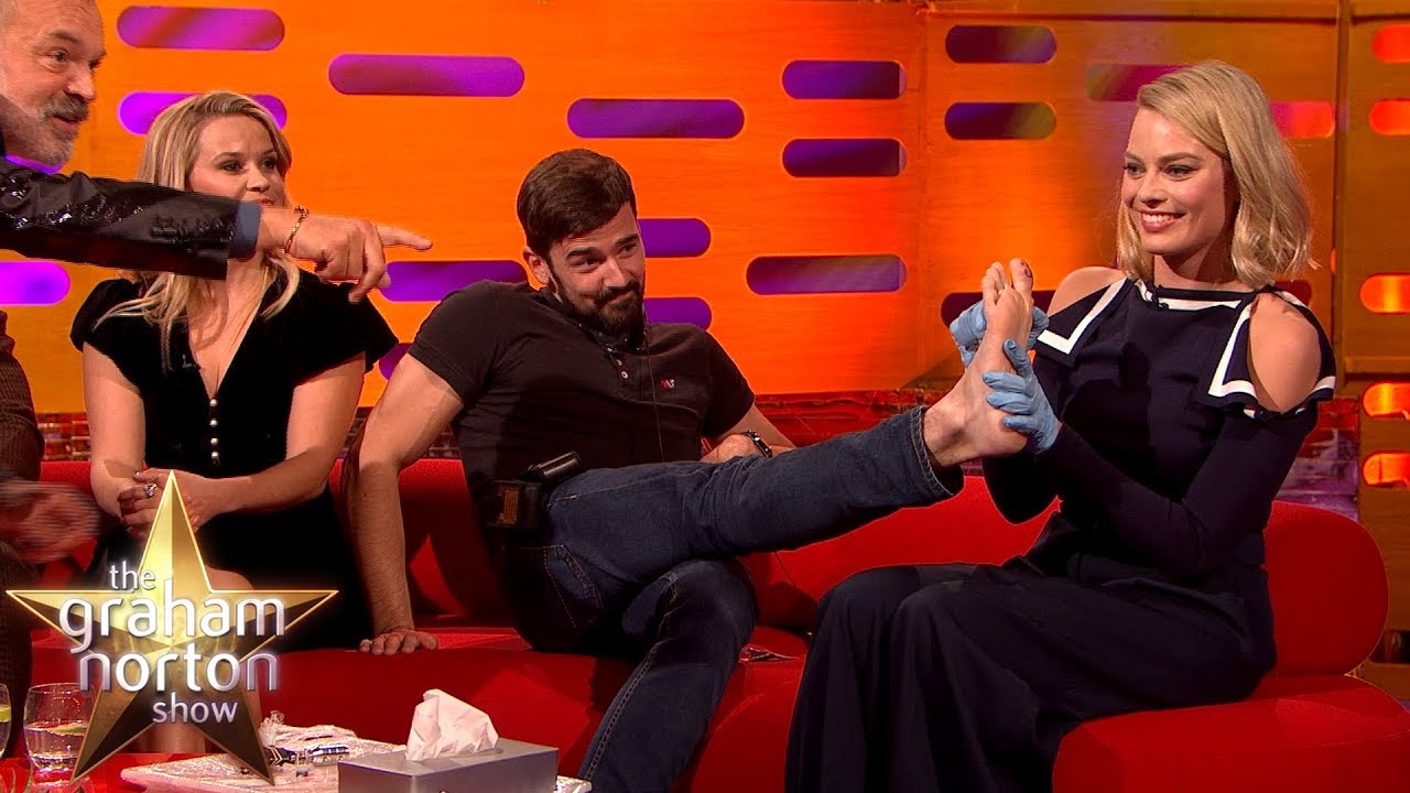 In this clip from the latest episode of Graham Norton’s BBC celebrity talk show, The Graham Norton Show, Australian actress Margot Robbie uses her tattoo talents to give a “toe-moji” tattoo to a willing staffer from the show.