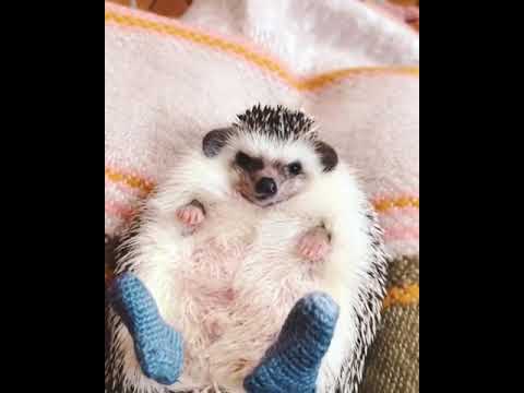 In this ridiculously cute video from the UK, a spoiled pet hedgehog enjoys some gentle belly rubs while staying cozy in his tiny knitted socks.