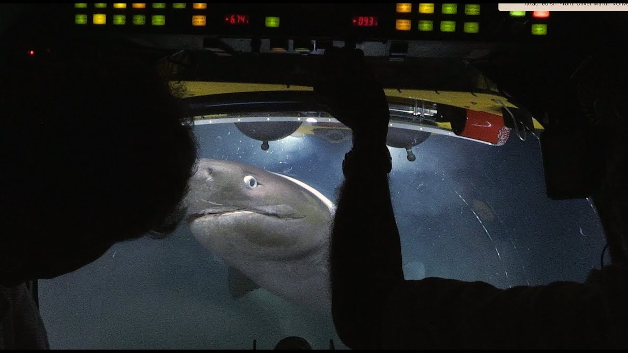 “The Blue Planet II team dive to over 700 meters to see what happens to a whale carcass on the seabed. Whilst filming sharks as they feast, the sharks start to take a worrying interest in the submarine!”